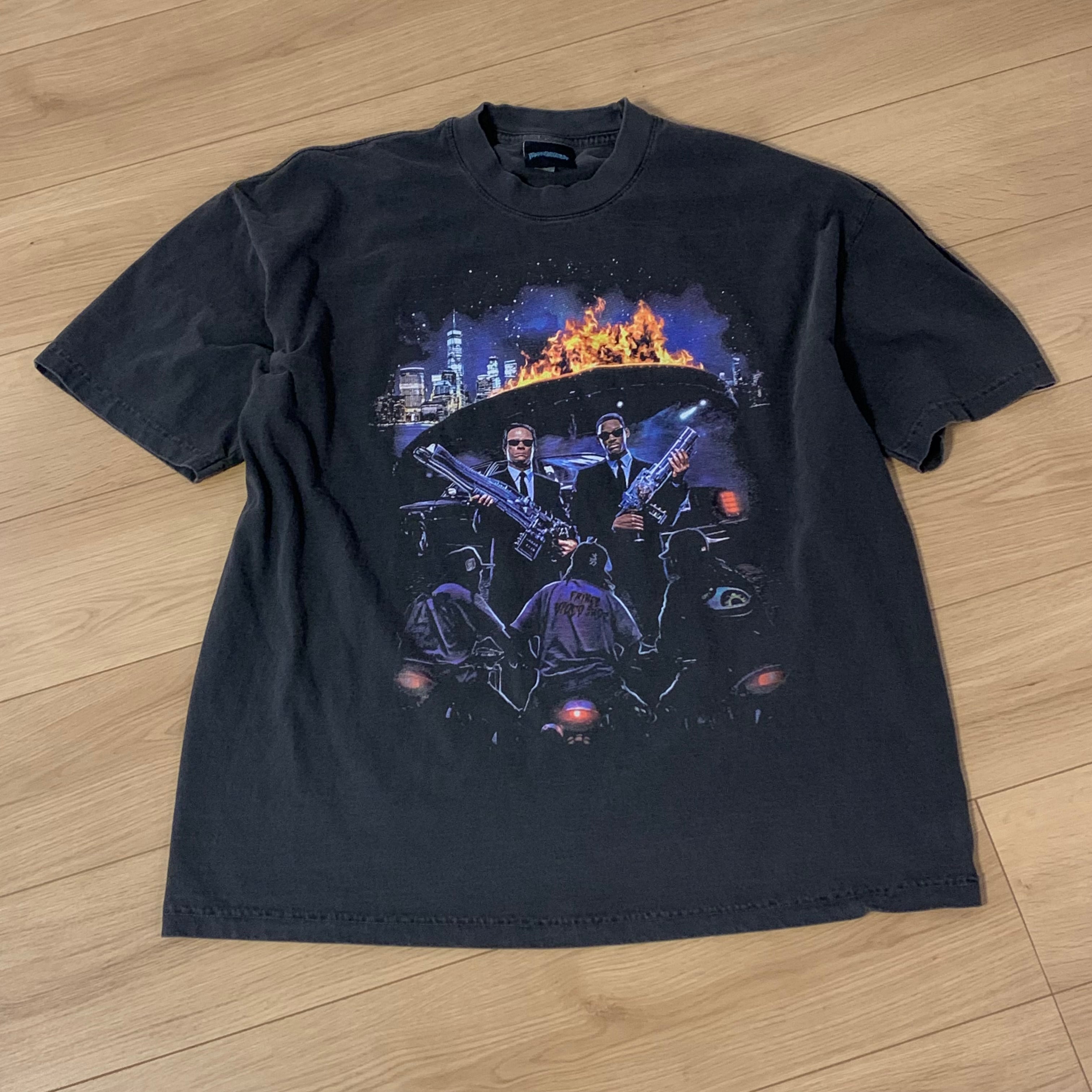 送料無料【希少 即完売 FRINGE VIDEO SHOP】 MEMORY ERASED 6.5OZ GARMENT DYED S/S TEE BLACK XL】